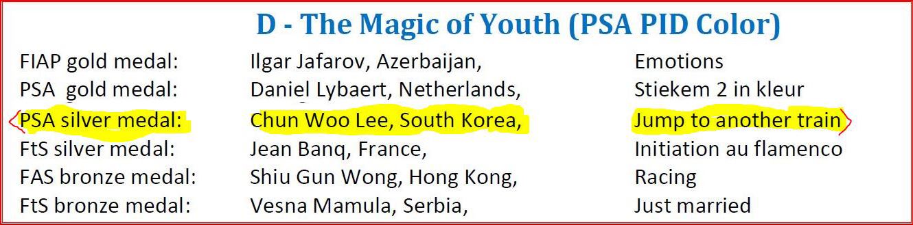 'The Magic of Youth'부문에서 'Jump to another train'란 제목으로 PSA Silver Medal(은메달),
