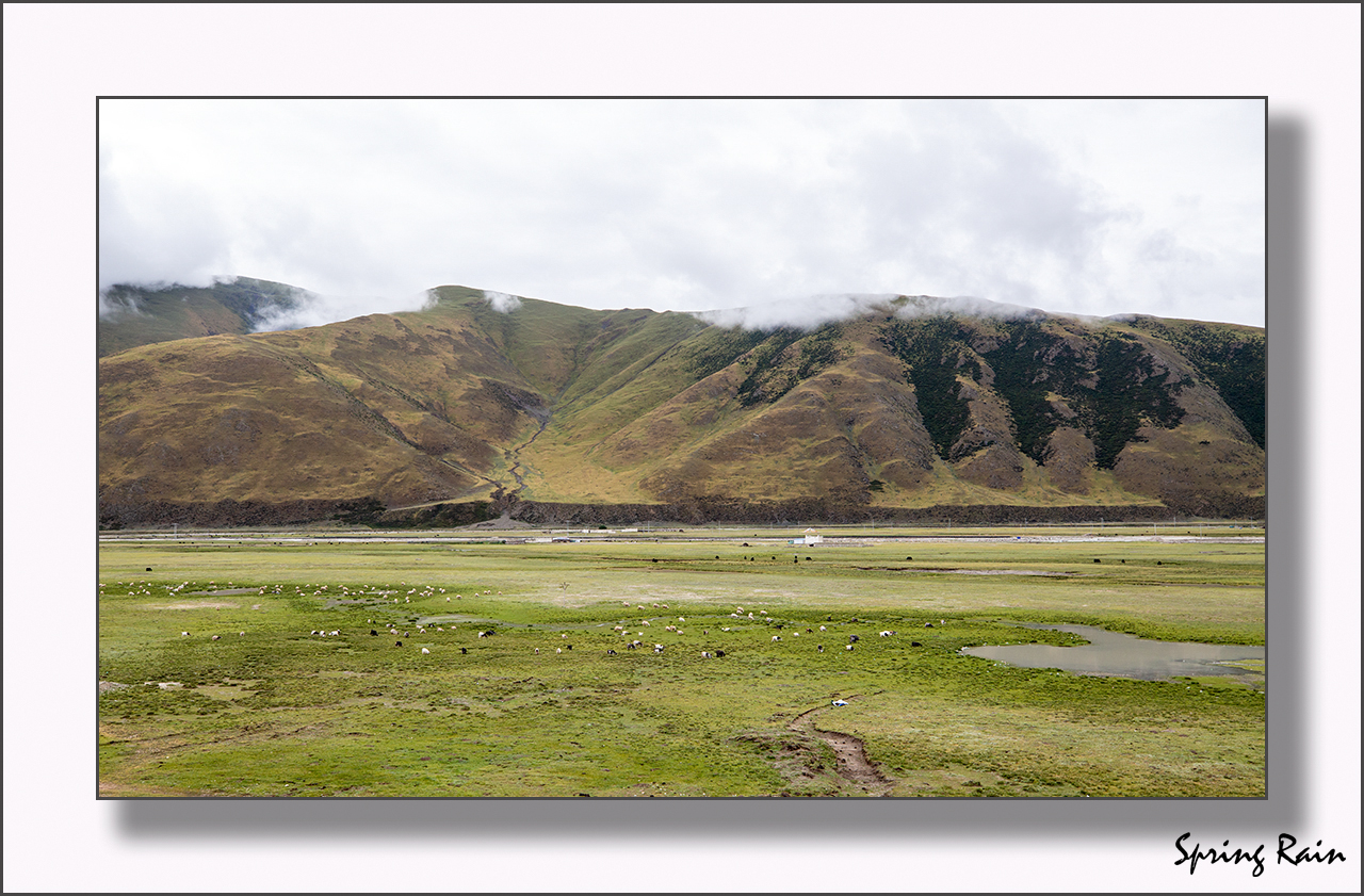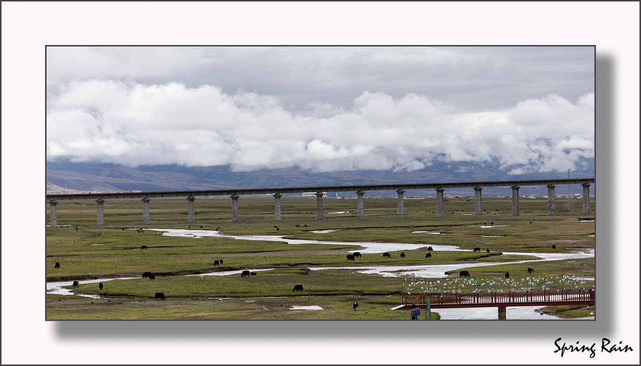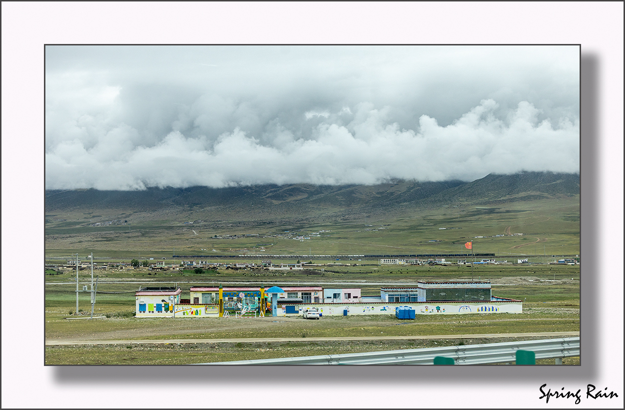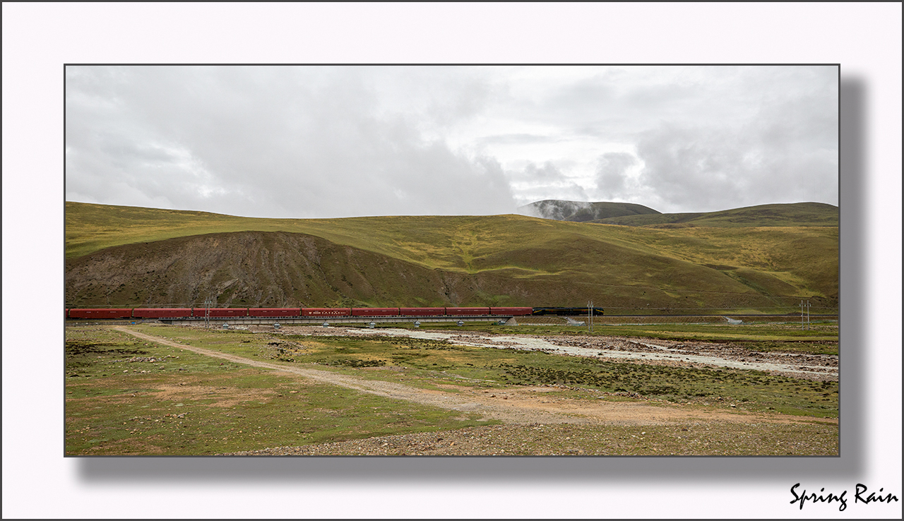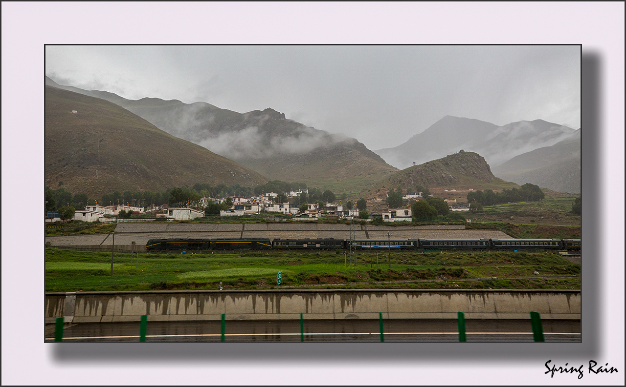 옆에는 기찻길이 나있고 마침 칭짱열차가 비오는 산골을 여유있게 지난다 추억을 안고ㆍ심으러ㆍ만들러~~