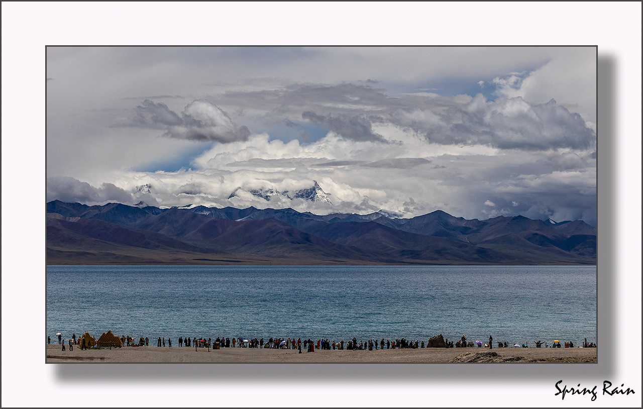 힘겹게 타르초가 아무렇게나 쉼없이 나부끼는 나건라고개(5,190m)를 넘어서니 멀리 호수가 보인다. 남쵸다..