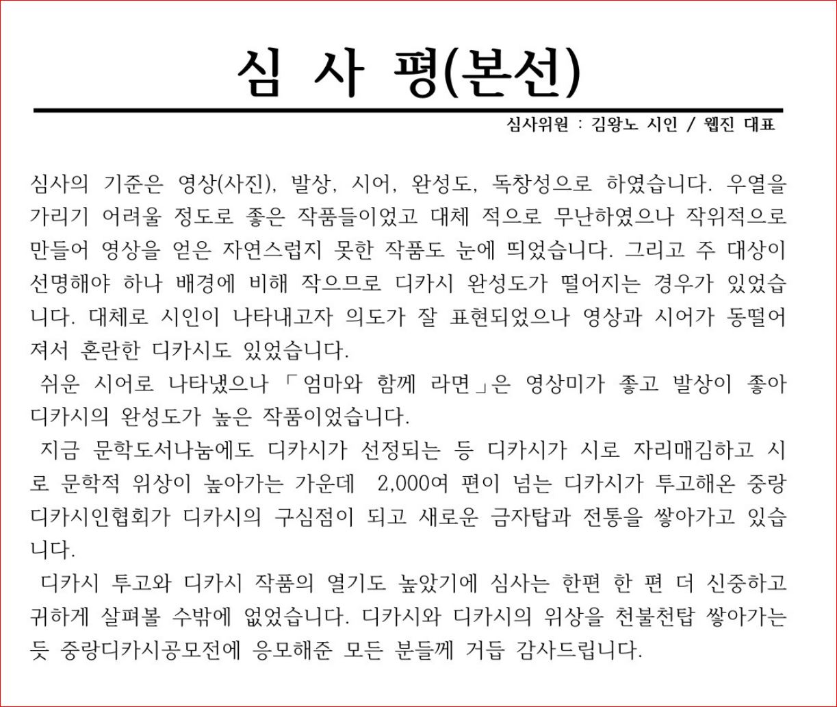 사진으로 상을 받는것은 여러번 있었지만 '디카시'는 또 다른 영역이라 더 그랬다.
